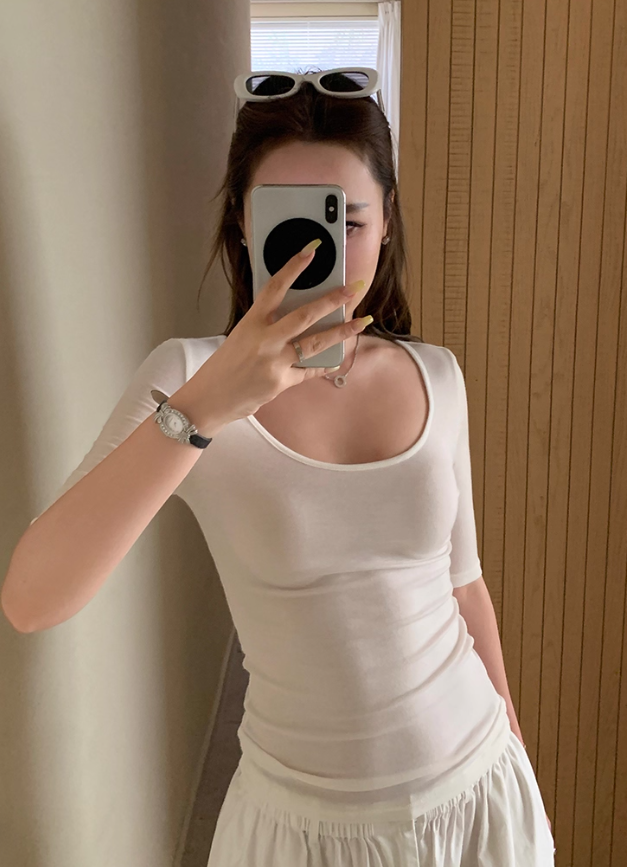 Women’s Summer Tencel Wool Short-Sleeve Top: Big U-Neck & Round Neck