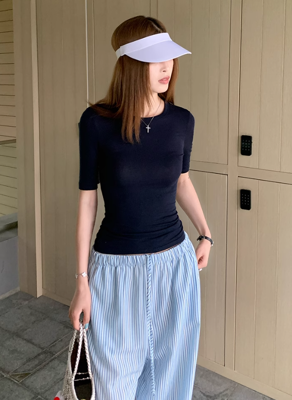 Styling this top is a breeze, thanks to its versatile nature. For a relaxed, laid-back summer look, team the big U-neck version with high-waisted denim shorts and strappy sandals. Throw on a wide-brimmed hat and oversized sunglasses, and you’re ready for a day of exploring or a picnic in the park. If you opt for the round neck, tuck it into a flowy midi skirt and slip on some espadrilles for a feminine, polished ensemble that’s perfect for a brunch date or a shopping trip. You can also layer it under a lightweight blazer or a denim jacket for cooler summer evenings or when you need a more professional look at work.