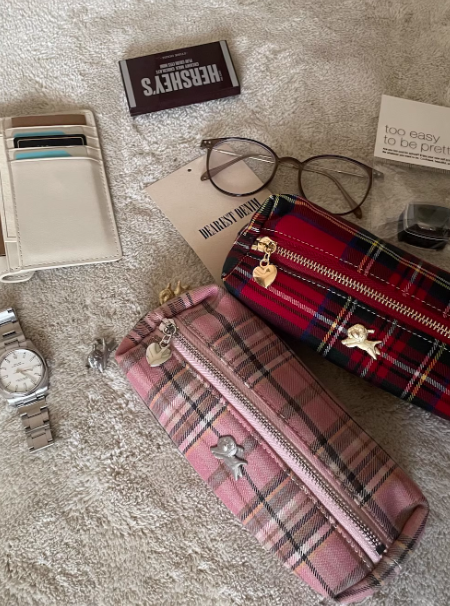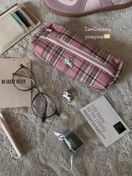 The design is what first draws you in. There’s a vibrant red – toned plaid option that buzzes with energy, perfect for those who love bold statements. Then there’s a soft pink – toned plaid, gentle and sweet, ideal for a more understated charm. The star of the show is the little scarf – adorned puppy detail—its playful look turns a simple pencil case into something you’ll want to show off, not just stash away. Whether your style is loud and lively or soft and subtle, there’s a plaid here to match.