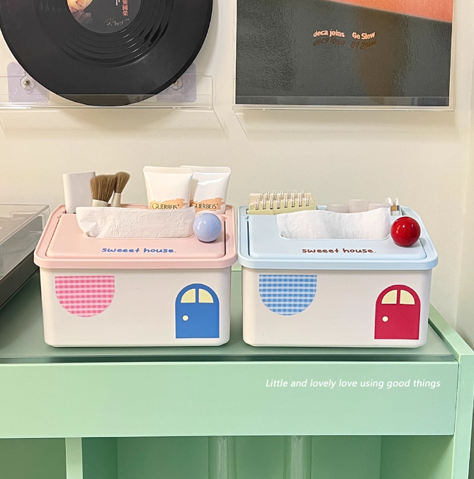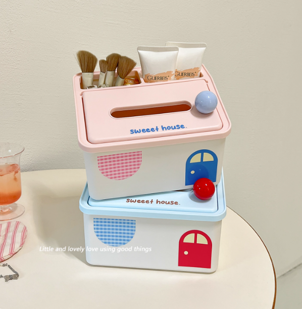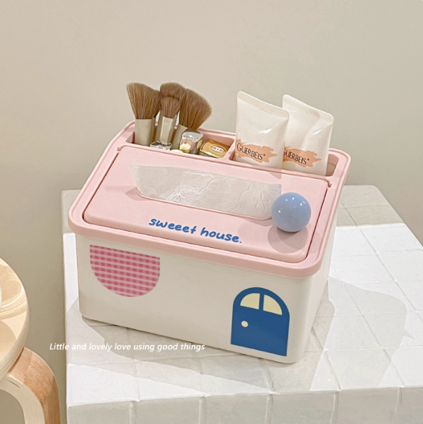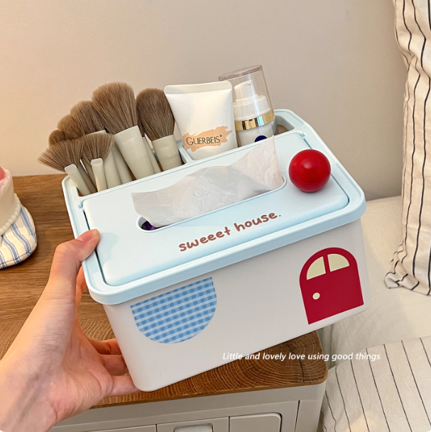Constructed from high-quality materials, the organizer features multiple compartments designed to hold tissues, makeup brushes, lipsticks, pens, and other small desk items. The tissue box compartment is cleverly integrated into the house’s design, allowing for easy access without disrupting your desk’s overall look. Adjacent sections are sized perfectly for cosmetic tools and stationery, making it a versatile storage piece that adapts to your needs.