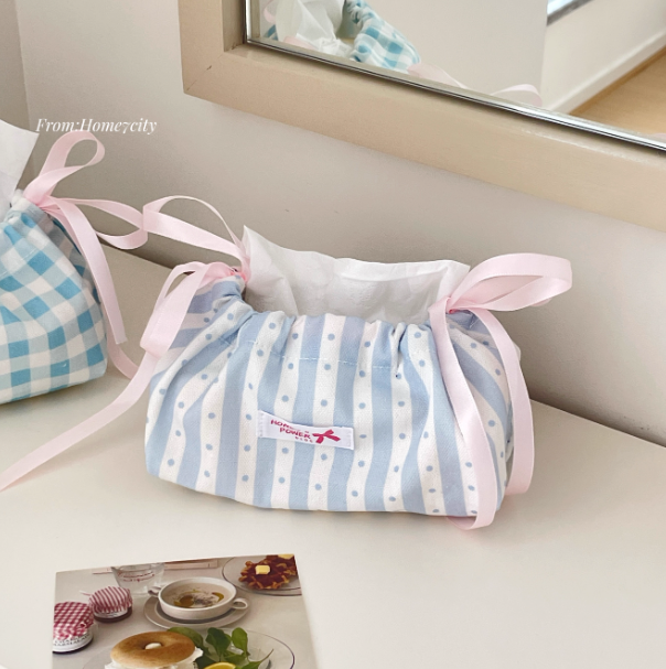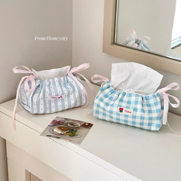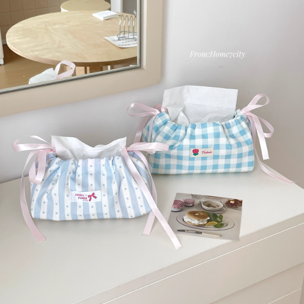 INS Style Korean Blue Plaid Drawstring Tissue Bag – Cozy Home Storage Box