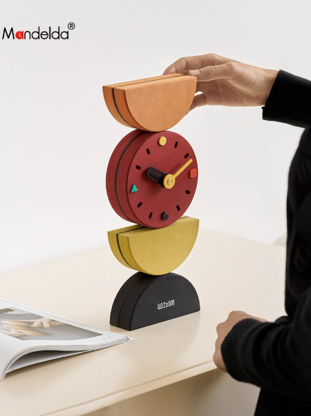 This artistic clock ornament is versatile in style, fitting well with minimalist, modern, Scandinavian, or eclectic home designs. The neutral color palette and clean lines make it easy to pair with other decorative elements such as vases, photo frames, or books, creating a harmonious and stylish arrangement.