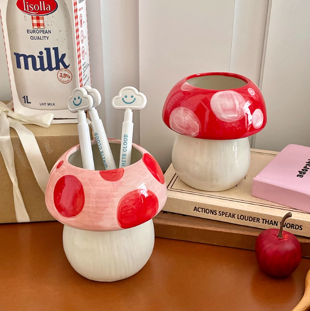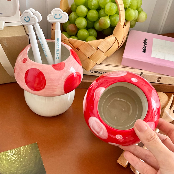 Whether used as a pen cup, makeup brush container, or a small accent piece on your shelf, this mushroom-shaped ceramic holder transforms your desk into a more beautiful, creative, and inspiring space.