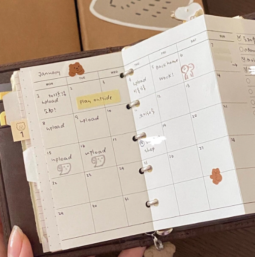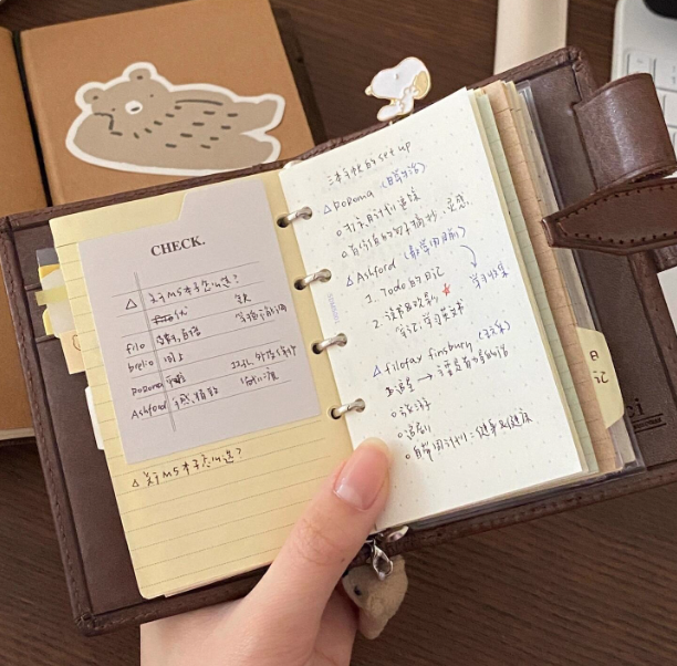 Inside, you’ll find a refillable 6-ring binder system that allows full customization. You can choose from various insert styles—lined, grid, blank, kraft paper, or even zipper pouches—allowing you to turn this M5 notebook into a daily planner, memory book, or creative sketchpad. The ring binding also makes it easy to rearrange pages or refill them as needed, giving the notebook a long-lasting, zero-waste edge.