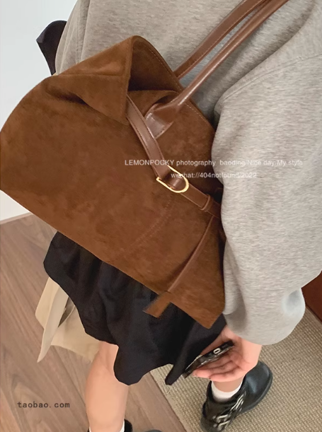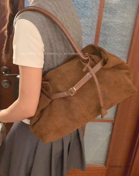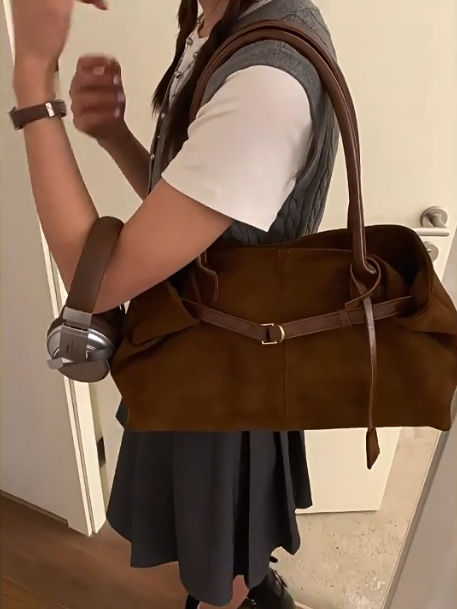 Embrace the effortless charm of autumn with this 2025 suede shoulder tote, a fresh take on Korean-inspired vintage design that feels both nostalgic and refreshingly modern. With its rich texture, practical size, and timeless silhouette, this large commuter bag was made for the season’s shift into softer tones, layered outfits, and a return to cozy daily routines.