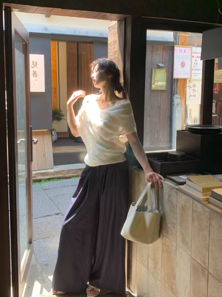 The simplicity of this white top makes it an essential piece in any wardrobe. The clean, minimalist design is easy to accessorize with delicate jewelry, a bold necklace, or a stylish handbag. Whether you’re dressing it up or down, this off-shoulder T-shirt offers endless styling possibilities for both casual and semi-formal occasions.
