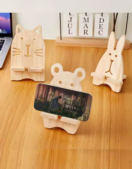 This cute wooden cartoon stand simplifies your digital life by combining style, practicality, and versatility. It helps organize your devices, reduces clutter, and provides a comfortable viewing angle for hands-free use. Perfect for home, office, or study spaces, it transforms your desk into a functional yet aesthetically pleasing area.