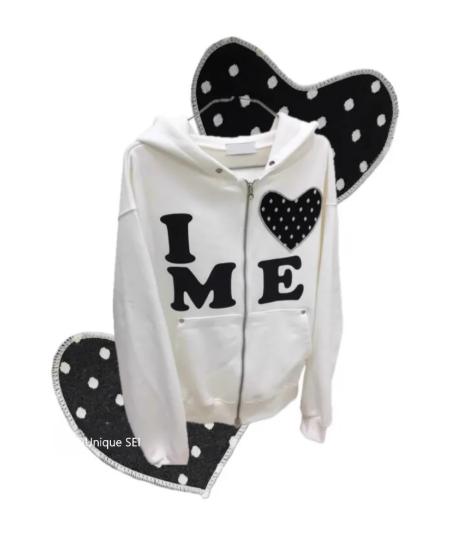 Embrace warmth and confidence this season with the Korean “I LOVE ME” heart hoodie — a perfect mix of style, comfort, and charm. Designed with soft fabric and a cozy hood, it keeps you warm while adding a dose of playful confidence to your everyday look. The adorable heart and polka dot pattern brings out your sweet, youthful side effortlessly.