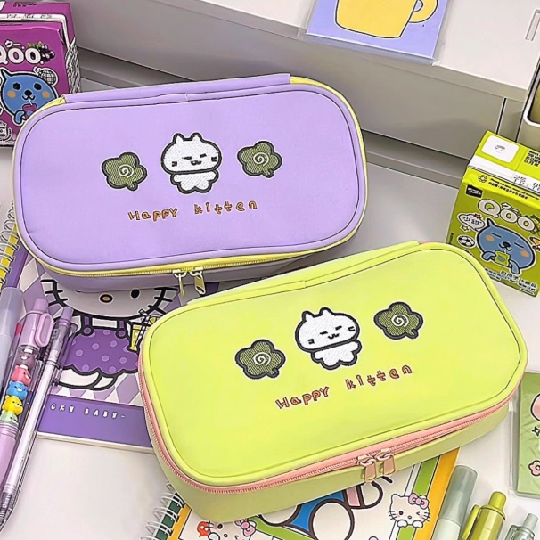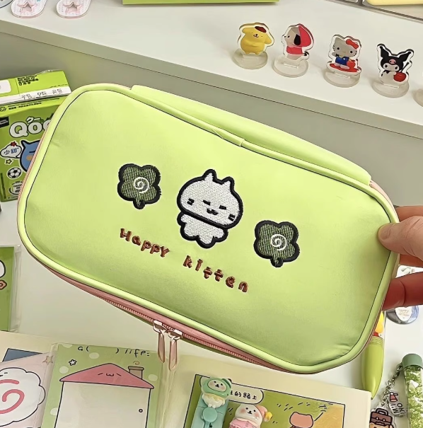 More than just a pencil case, this Clover Cat Pouch doubles as a multifunctional storage bag. You can use it as a cosmetic pouch, small travel bag, or desk organizer. Its elegant embroidery and pastel tones make it a lovely gift for friends, classmates, or anyone who appreciates cute and functional stationery.