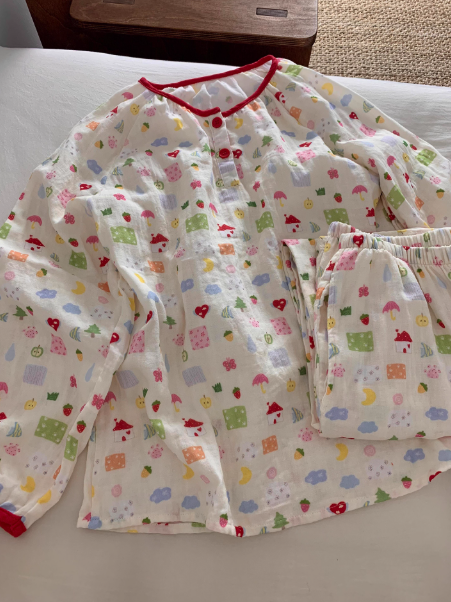 Step into comfort and sweetness with this Korean-style long sleeve pajama set, adorned with charming strawberry prints. The soft pastel tones and delicate patterns bring a fresh, cheerful touch to your homewear collection, making relaxing moments feel extra special.