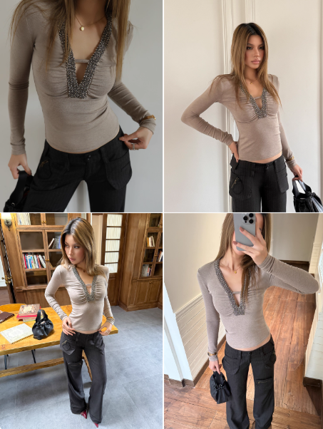 Ideal for women who appreciate quality materials and timeless style, this V-neck Beaded Long Sleeve Top redefines everyday fashion with a touch of artistry. It’s soft, stylish, and beautifully detailed — the perfect fusion of classic femininity and modern sophistication. A single piece that can elevate your wardrobe and make you feel confident and radiant wherever you go.