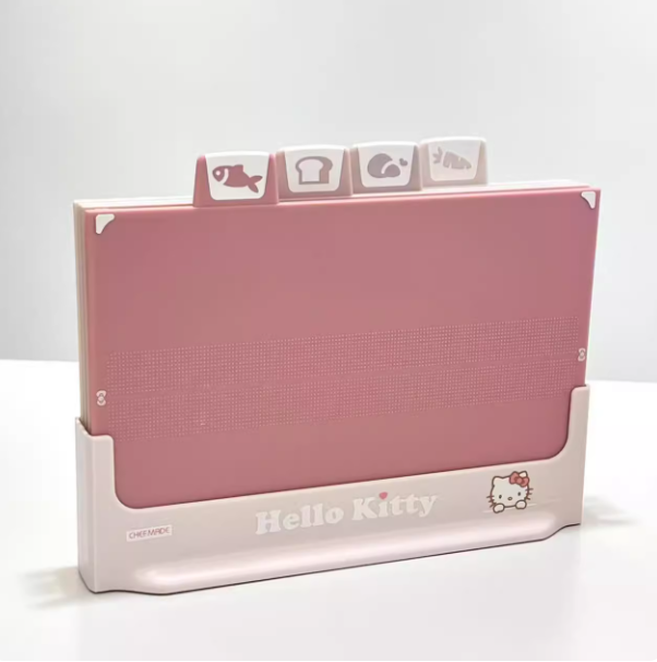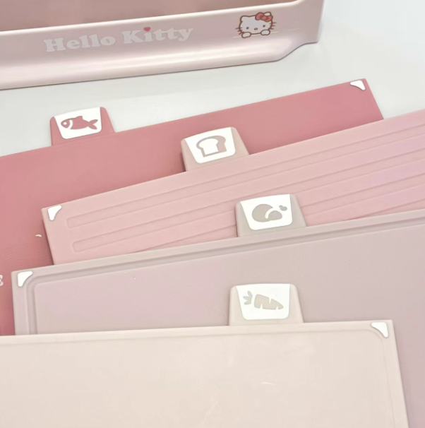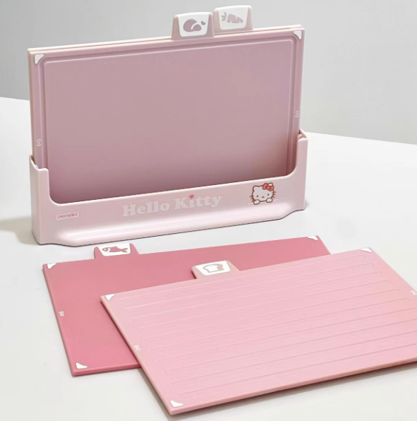 This set also includes a practical storage stand, designed to hold the boards upright for easy drying and space-saving organization. The ventilated design promotes airflow, preventing moisture buildup and extending the lifespan of your boards. The pink color palette, complemented by the cute Hello Kitty pattern, transforms a simple kitchen tool into a charming décor accent that instantly brightens your space.