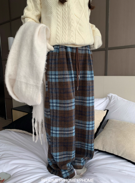 Step into the colder months with comfort and style in these plaid woolen wide-leg pants. Designed with a timeless check pattern, they bring a classic winter aesthetic to your wardrobe. The soft fleece lining keeps you warm during chilly days, while the relaxed silhouette ensures easy movement and a flattering fit for all body types.