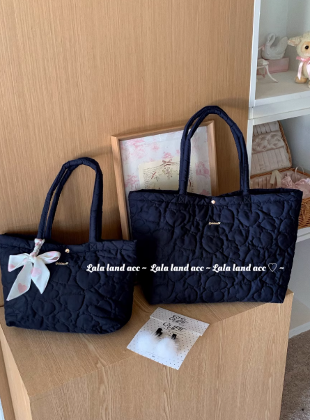 Waffle Heart Quilted Tote Bag Large Capacity Shoulder Bag
