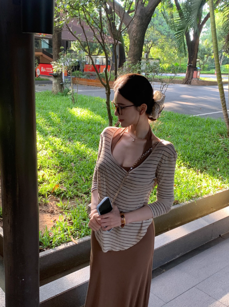 The vintage stripe pattern adds a subtle nostalgic flair, giving off that effortlessly chic “French retro” vibe. Each stripe is delicately spaced to elongate your figure, while the soft color palette makes it easy to pair with jeans, skirts, or tailored trousers. Whether for coffee dates or office looks, it blends versatility with style.