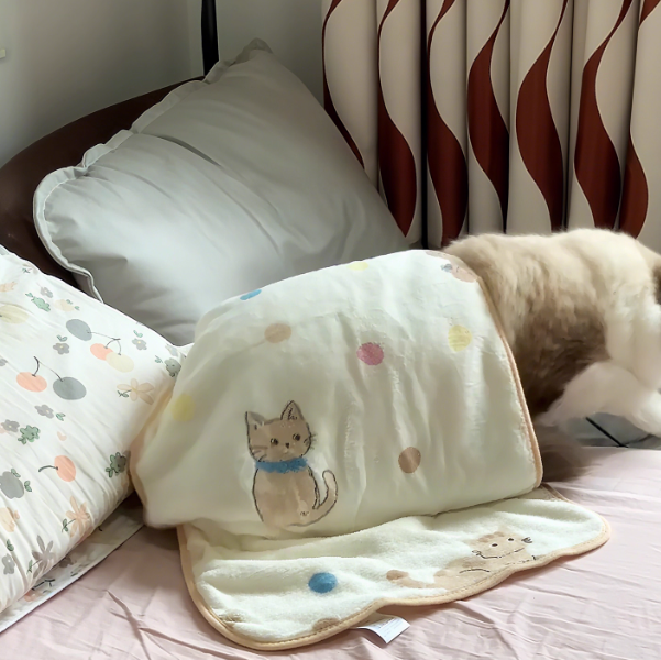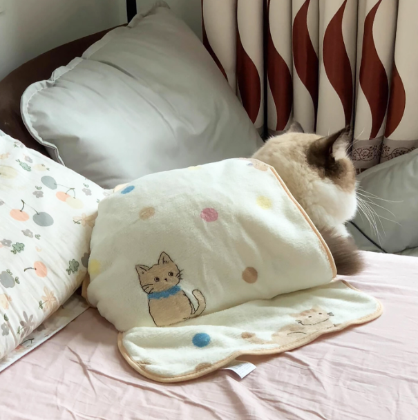 Bringing home this cozy polka dot pet blanket means giving your cat a warm haven during autumn and winter. It blends comfort, cuteness, and practicality, creating the perfect sleeping environment for kneading, curling up, and enjoying peaceful naps. A simple addition that brings big comfort to your feline companion.