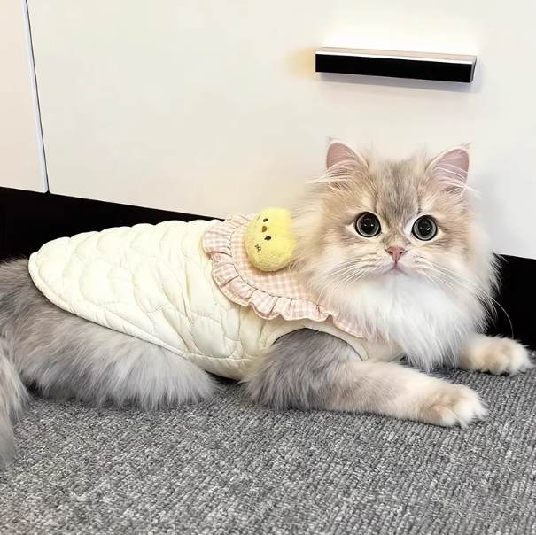 Beyond appearance, the vest provides functional warmth that helps reduce the chill that small pets often feel during winter. Short-fur cats, young puppies, or older pets benefit from an extra layer that helps protect them from cold floors, drafts, and low temperatures. It can even help pets rest more comfortably during the night or nap times.