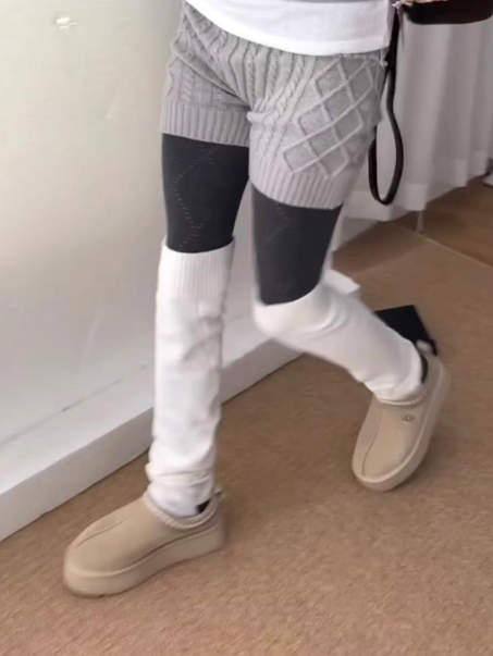 Styling possibilities are nearly endless. Pair them with oversized sweaters, structured coats, thick knits, short skirts, denim shorts, trench coats, or even urban street-style fits. The tights instantly add dimension and character, making outfits feel thoughtfully composed even with simple pieces. A basic sweatshirt and shorts combo turns into a Korean-style winter look with minimal effort.