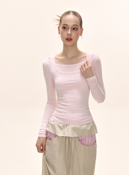 Layered fashion has never been easier than with this two-piece long-sleeve top. Designed for a modern, casual look, it offers a soft pink tone and a comfortable fit that flatters a variety of body types while maintaining everyday practicality.