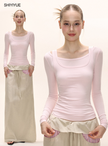Choosing this two-piece pink long-sleeve top brings both comfort and fashion to your wardrobe. Its layered design, flattering fit, and versatile styling options make it an essential piece for autumn, providing a polished yet relaxed look that can be worn in multiple ways.